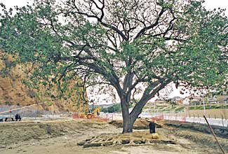 The remaining white, or valley oak (Quercus lobata) sat directly in the middle of Pico Canyon Road?EUR??,,????'???s path and was estimated by Senna Tree Company to be 180 to 220 years old. The decision to relocate this tree originated with an effort by John Laing Homes to save it while also fulfilling the projected transportation needs of Santa Clarita Valley and the requirements set forth by a pre-approved tract map for the expansion of the road.