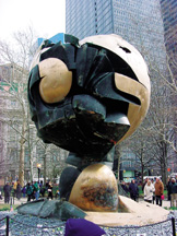 As of March 2002, The Mall has become the temporary home for Fritz Koenig's, "The Sphere," which was recovered from the granite fountain in the center of the five-acre World Trade Center Plaza. Next to the sculpture lies The Eternal Flame that was lit on Wednesday September 11, 2002. Both serve as an interim memorial to commemorate the lives of those lost in the World Trade Center attack. "The Sphere," was previously lit by high-pressure sodium lamps. These lamps did nothing to highlight the dramatic texture and coloration of the sculpture, which many believe is not only symbolic of humanity's resolve to overcome all that is evil, but has become a visually more interesting and compelling work as a result of being subjected to the physical destruction that ensued on September 11. The new lighting provides 360????? coverage using eight, 70-watt,10-degree spot lamps that offer superior color rendering and energy efficiency. The lamps were mounted on custom designed ladder rests on four existing lampposts bordering the sculpture on the Mall.