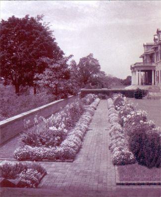 Plantings in the formal gardens designed by Artemas Richardson of the Olmsted office were simplified greatly from the 1906 plan because of concerns over maintenance. A large grass panel, for use as a staging area, was constructed in the central area of the formal garden where perennials had originally been planted.