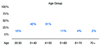Our first chart breaks down the age groups of the respondents. As was the case last year, the majority of responses were from men, although female response rose from 12 percent to 15 percent. Business has been good this year, reflected by the percentage of respondents owning their own home, up 6 percent from last year to 88 percent.