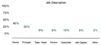 Landscape Architects are principally design oriented and 71 percent of those responding are either owners or principals of their firm. The following chart indicates how respondents describe themselves. The majority of Landscape Architects indicated more than one job description.