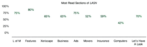 The following graphs are of great importance to The Landscape Architect and Specifier News. By asking you which sections you prefer to read, we will be better able to provide you with the information you seek. In addition to the categories listed, we received many interesting suggestions such as a “consumer speaks” section, employee motivation, CADD comparisons, redevelopment and municipal planning. In upcoming issues of the LASN we will try to accommodate the majority of your requests and we thank you for all the excellent suggestions.