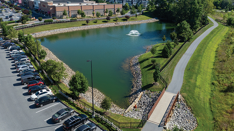 When The Shoppes at Belmont opened in 2018, it redefined what a retail center could be in Lancaster County, Pennsylvania. The 71-acre development combines national retailers and restaurants with preserved history, restored landscapes, and new neighborhoods. What began as a complex, historically sensitive site became one of the most recognizable projects in the region and a model for mixed-use development. Local landscape architecture firm RGS Associates provided site design, land use entitlements, civil engineering, and landscape architecture for long-time partner and project developer, Waters Retail Group. From Quarry and Farmland to Community Hub The Belmont site was once known as the Hess tracts: farmland that included a four-acre quarry, 19th-century lime kilns, a family graveyard, and a tree that had become a landmark fixture in the neighborhood. The property is located at the intersection of one of the busiest corridors in Lancaster. Converting this site into a thriving retail center required more than grading and infrastructure. From the earliest planning phases, the design team worked to integrate historic features into the plan, weaving them into the experience of shopping, dining, and walking through Belmont.Tackling Stormwater and Site Design ComplexitiesOne of the project's defining challenges was the quarry. Nearly four acres in size and 30 feet deep, the quarry sat at the center of the site. Rather than treat it as a liability, the team turned it into a functional and aesthetic feature. Some portions were filled with compacted stone while other areas were preserved and reimagined as stormwater management facilities, a walking trail, and a scenic platform.