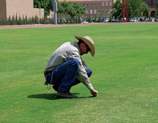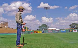 Shroyer, managing director of the grounds department, went on to get a master?EUR??,,????'???s degree in park administration, which eventually became a landscape architecture degree in 1970 (Shroyer is a registered landscape architect in the state of Texas). With 29,500 students on campus, Shroyer and his crew have their work cut out for them. The maintenance department at Texas Tech is made up of 101 people and has an annual budget of $3 million. Out of that $3 million, $114,000 is allotted for maintaining the 25-acres of athletic fields. Like Shroyer, foreman Cory Herpel is a graduate of Texas Tech. He earned his bachelor?EUR??,,????'???s degree in environmental conservation and is currently working to finish his master?EUR??,,????'???s degree in horticulture with an emphasis in turfgrass. As an undergrad, Herpel got into the turf program part-time and thoroughly enjoyed himself. For the first year and a half of his master?EUR??,,????'???s program, Herpel worked with the Texas Tech football team taking care of their practice facilities. He changed gears slightly and for the last two months has been working with the grounds department at the athletic fields. ?EUR??,,????'??It?EUR??,,????'???s going good so far,?EUR??,,????'?? said Herpel. ?EUR??,,????'??It was kind of overwhelming at first, I went from taking care of 3-acres to taking care of 25-acres in one week.?EUR??,,????'??