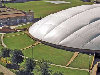 All of the fertilizer applied to the athletic fields is based on yearly soil testing. This year they are using an 18-6-12 blend as the main fertilizer. When the fields are seeded with ryegrass in September, a half-pound of nitrogen is put down per 1,000 sq. ft. per month until December when the temperature drops off. They resume the fertilizing schedule around February or early March. Herbicides and pesticides are applied on an as-needed basis by a licensed applicator. According to Shroyer, the main pests they deal with are fire ants, grubs, nutsedge, crabgrass and khaki weed.