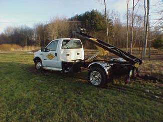 Installing a Switch-N-Go subframe onto a truck chassis (including installation of fenders and bumper) is typically an eight-hour job by a qualified mechanic with proper tools. The kit includes an electric winch, electric driven hydraulic hoist cylinder and structural framework that allows quick, secure body changes, full 50 degree dumping capability of payloads, over-the-road transport, and winch loading of up to 15,000 pounds of cargo onto the truck chassis. The system is operated with a simple two-button pendant that is portable and attaches in the truck cab or outside by the side of the truck. Since this is an electric over hydraulic system, the mess of leaking fittings at the transmission are gone. This is a neat package. It is portable by undoing 12 bolts and the electric line when the truck is sold. Service on the system is easy, indicates Brian. ?EUR??,,????'??In any city in the U.S., you can find parts and a qualified person to service these products. If you do have one break down, getting it repaired is no problem?EUR??,,????'??+you?EUR??,,????'???ll have it fixed within a matter of hours.?EUR??,,????'??