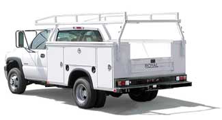 Standard features: Stylish and aerodynamic wind faring that enhances appearance and fuel economy. Horizontal compartment door that doubles as a workbench. Floor space between compartments to handle plywood and dry wall sheets. Spacious front compartment that handles Shop Vacs, plumbers snakes and more.