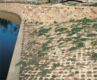 Across the country design professionals, municipalities, departments of transportation and the Corps of Engineers are realizing the aesthetics, practicality and economics of SRWs in water applications. Used in storm water retention and detention ponds, as hard edging of lakes or ponds, as channel linings and bulkheads to prevent erosion, as head walls, or for building up out of the flood plain, SRWs are all commonplace in today’s commercial construction. Irving, Texas, has used SRWs not only to solve erosion problems along Delaware Creek but as an aesthetic focal point of their Fritz Park and Delaware Creek Park projects. Special production color blends were devised to coordinate with local natural stone. According to Casey Tate, parks planning and construction supervisor for the city of Irving, “Citizen feedback on park improvements has been extremely positive. The SRWs have contributed an aesthetic solution to a very ugly erosion problem.” To date, in excess of 90,000 square feet of channel walls have been installed on the park projects.