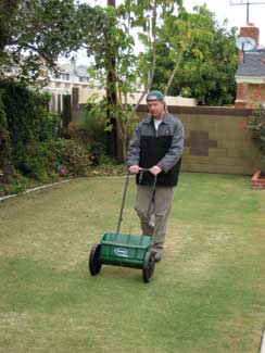 At planting. Fertilize soil before planting seed, sod, plugs or stolons. A general recommendation for a preplant fertilizer for most California soils is to apply 12 pounds of ammonium phosphate-sulfate (16-20-0) per 1,000 square feet (6kg per 100 sq m), rototilled into the top 4 to 6 inches (10 to 15 cm) of soil.