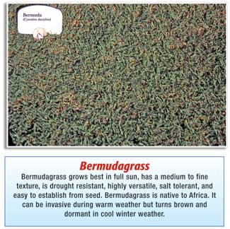 The best time to start a bermuda lawn from seed is from late spring to late summer when nighttime temperatures stay above 65 degrees. Sodding is the most common method of establishing a hybrid bermuda lawn, although sprigging is also used. Bermuda lawns can be sodded anytime of the year, but the best time is during the summer months. This species does not have any significant disease or insect problems when properly mowed, fertilized and watered. With the exception of buffalograss, seeded bermudagrasses have the lowest water and fertilization needs among the warm season grasses. Bermudas go dormant and turn brown with the first cold weather in the fall and don?EUR??,,????'?????<???EUR?t renew growth and color until soil temperatures get back to at least 60 degrees F.