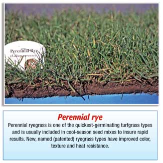 Perennial Ryegrass?EUR??,,????'?????<??oe The new turf type perennial ryegrasses are the most versatile of any lawngrasses available. Compared to the old common types, the new turf types have narrower leaf blades that cut clean with a good sharp mower. They are darker green and are more resistant to disease and insect injury. They have improved tolerance of hot weather when not stimulated with too much fertilizer.