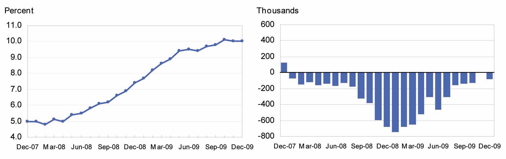 In December, both the number of unemployed persons stayed unchanged at 15.3 million. At the start of the recession in December 2007, the number of unemployed persons was 7.7 million. Unemployment rate was 5 percent.