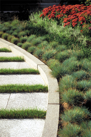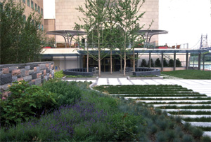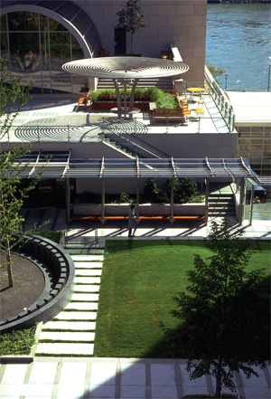 This project received the 2003 Merit Award from the New York ASLA, as well as being selected by a jury for inclusion in the 2002 Designed Land Forum II. Thomas Balsley also did the designs for Gantry Plaza Park, Riverside Park South, the new park constructed on the old rail yards between 72nd and 59th Streets on the west side of Manhattan, as well as a park on 57th and 9th Avenue which was named after him - Balsley Park. The park he designed in the corridor between W. 27th Street and W. 26th Street, east of 6th Avenue, featured in “A Plaza Runs Through It,” LASN February 2005, Vol. 21, No. 2.