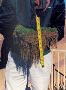 A water meter was installed for the fields to measure water consumption. From August 17, through October 17, 2000, water requirements were reduced by 59 percent compared to historical water demands for sprinklered systems in the Reno high desert climate. Jim Connolly Consulting, Ltd., the agronomist consultant for the project was very interested in ECS as a way to achieve 100 percent irrigation efficiency, while maintaining high infiltration rates. "Even with a high drainage capacity, the plant is not subject to drought because the root zone is maintained at field capacity."