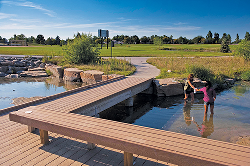 The landscape contractor planted native plants especially designed to attract herons, ibis, snowy egrets and killdeer, making the Trex wetland boardwalk a nature enthusiast's paradise. The engineering and design for flood control had to be precise, but park planners never lost sight of the functionality and appeal that was a top priority for park patrons. Rather than looking like a water retention area, Utah Park abounds with unique landscaping features, varied topography and personal touches like the lookout knoll and themed playground.