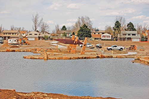 The original pond at Utah Park was relocated to provide 100-year regional flood control. The pond also has an updated re-use water irrigation system to pump water from the pond to the outer reaches of the park more efficiently. Pond edges were lined by flat surface, native sandstone boulders, which allow park users to get up close without getting muddy. Colorado Designscapes planted native riparian plants, like Baltic Rush, Narrow Leaf Cattail and Water Sedges, around the pond to enhance the aesthetic appeal and attract native wildlife like songbirds. Staff from Aurora and Urban Drainage cut willows and replanted them at Utah's pond edge as well.
