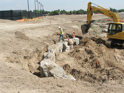 One the primary challenges that Colorado Designscapes took on was the fact that the park's sandy soil slowed down the installation of the massive irrigation system. The contractor was faced with dealing with unstable trench walls, as well as the weather conditions that came with working in a flood plain. This was no small challenge, as Designscapes laid more than 50,750 feet of PVC irrigation pipe, in diameters from 12 inches to one inch. They wired the entire irrigation network to a Toro Scorpio Central Control System.