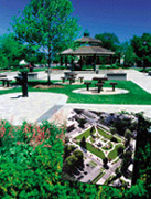 Just past the large metropolitan area of Chicagoland lie small towns and villages that can be described as the model of middle America. These towns do not have the hustle and bustle of Chicago, a maze of highways do not course their way through the middle of town, nor do they have high rises that dot the landscape. Instead, these small towns feature winding roads, town halls and a plethora of open space that allows town residents an idyllic way of life. Three of these Illinois villages: Lincolnshire, Palatine and Westchester recently received upgrades to their parks that have enhanced the beauty of these areas. VILLAGE OF LINCOLNSHIRE - VILLAGE GREEN The Lincolnshire Village Green makes exemplary use of every opportunity for effective utilization of space for the highest possible aesthetic achievement. The project design team was challenged with several key criteria: to be the focal development of the downtown for Lincolnshire; become a central common space for the attraction of shoppers, and provide vital parking spaces for the businesses in the Village Green Center. The client?EUR??,,????'???s goal was to have an elaborate fountain that provided four-season interest at the center of the space, and eventually, the town. The design and planning team consisted of the Village Manager, the Director of Community and Economic Development, the Village Engineer and Dan Dalziel, Principal of 3D Design Studio. The Village was in the enviable position of being a highly desirable location for business and retail spaces alike. The developer knew he wanted to be in this address location, and was willing convinced to accept the following offer- for an approved Planned Unit Development requested, he would fund and build the Village Green to the contribution level of $500,000.00. Upon its successful and accepted completion, the Village would accept ownership and maintenance of the Village Green. The Village would pay for costs over the stipulated one half million cost to the developer. With the agreement in place, the design team set out to design a new Village Center. The Director of Community and Economic Development happened to be a landscape architect. He and Dalziel recognized the importance of a giant oak tree standing in the tract of land to be developed. The first steps in the planning process were to have the site topographically surveyed and the center of the oak located and confirmed. With that task completed, the planning process centered, both literally and figuratively on the 300+-year-old Burr Oak. The radius for the curb that creates the drive around the green was predicated upon an area three feet beyond the dripline of the branches. The very first item constructed upon the site before any earthwork could commence was the erection of a six foot high chain link fence at the point that would become the back of curb for the roadway, permanently fencing off the oak during the complete construction period. The entire Village Green space is 180 feet wide (building face to building face) and 385 feet long. The complete development of offices, shops, stores, bank and restaurants configuration was based upon the location of the 300+-year-old Burr Oak tree in the center of the Green. All development planning centered on maintaining this magnificent specimen. In the process, it became the visual ?EUR??,,????'??center piece?EUR??,,????'?? of the Village Green. The design features a distinctive entry monumentation along Olde Half Day Road. The brick and stone pillars incorporate the distinctive logo of the Village and complement the architecture of the buildings residing on the Village Green. Upon entering the space, the roadway surrounding the elegant space is paved with decorative concrete pavers to match those used within the Village Green space. Parking areas were treated with asphalt trimmed out with concrete bands for durability. The asphalt was used where cars are parked to minimize any oil stains to any of the brick pavers. A complete signage package was developed for visitor to guide one to their destination. Once in the space, the central focal fountain dominates the space. The fountain is a computer activated random sequencing series of jets, sprays and falls, with the entire two-tiered container clad entirely of polished, honed and rough cut granite. The fountain is at the central axis of the two walkways as well as the center of the Green. It is a conversation piece and attracts shoppers to come and stay in the area. The fountain is surrounded by distinctive brick seat walls set in decorative pavers creating a distinctive pattern. Within the Village Green, there are numerous seating areas surrounded by distinctive and colorful landscaping. These are all designed to fit perfectly within a rhythm of street trees, pedestrian lights, planting beds and paver bands adding to the harmonious rhythm created by the sequence of design elements. The surrounding circulation walks and landscaping leading to the buildings set off the entries to each of the building fronts. Each entry to each storefront was given special consideration to make each entry distinctive, yet planned to complement the continuity developed with the hierarchy and system developed within the design guidelines. The north end of the development is culminated with a distinctive two-level granite planter matching the fountain in detailing and materials. Care was taken throughout the process in the selection of materials for all parts of the project. The light fixture selected became the standard to be identified for the Village and its use throughout. The benches, trash receptacles, drinking fountain and associated site amenities all complement each other in both style and color. The trees that were planted lining the roadway were hand selected as matched groupings of Autumn Blaze Red Maple and Autumn Purple Ash, with specimen Washington Hawthorn in the northern terminus planter. The remainder of the landscape is a variety of flowe