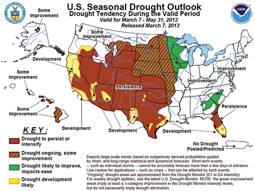 What Weather Experts See For Next Few Months AccuWeather issues a spring outlook for the U.S. every year; they are predicting that winter will hold on the longest across the Northeast and Northwest for as much as six more weeks. "I think we could still see some late-season winter storms [in the Northeast]," AccuWeather Lead Long-Range Forecaster Paul Pastelok said. Snow Removal Business Looks To Last A Few Weeks Longer For landscape contractors who perform snow removal during the winter, this promises to expand their business for at least several more weeks. Experts predict that more winter storms may impact the Northeast during March and even later. The potential exists for snow along the I-95 corridor from Washington, D.C., to New York City and Boston. This is not unusual for the region, as Pastelok noted, "Typically, February to March is the season on the East Coast." Historically, some large winter storms such as the Blizzard of '93 have struck the East Coast in March. Spring Forecast After the snow season, weather experts are predicting another warm spring across the Plains and Rockies, with worsening drought conditions across the hardest-hit areas. Extreme and exceptional drought conditions are gripping Colorado, Wyoming, South Dakota, Nebraska, Kansas, Oklahoma and portions of Texas.