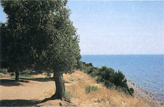 The as-yet unspoiled coast with olive grove. Photo by J. French.