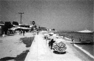 The newly paved beach frontage in Polyhrono, with new tourist facilities. Photo by I. Tsalikidis