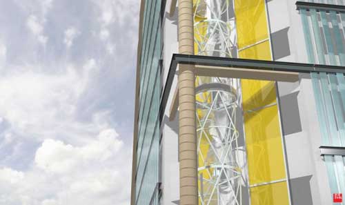 For the sake of public education, a ''way-finding system'' has also been incorporated at each elevator lobby to educate users on how to live more sustainably and protect the environment. A reversible meter has also been included to measure the amount of energy generated by the turbines and piped back into the grid of the city each year. HOK is currently pursing LEED certification for the building.