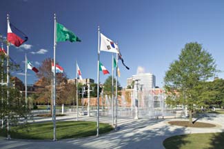 North of the Court of Flags Fountain is the HGTV Walk which serves as the park?EUR??,,????'???s north entry. The area is a stroll garden with a large parterre of trees and flowers with places to sit and enjoy the park and open space.