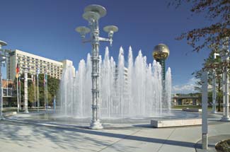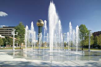 Instead of opening the core of the 1982 World?EUR??,,????'???s Fair site to development, the City of Knoxville decided to keep it as a park. The Knoxville landscape architecture and planning firm Ross/Fowler completed the job with a number of special references to Tennessee?EUR??,,????'???s history and geographic setting.