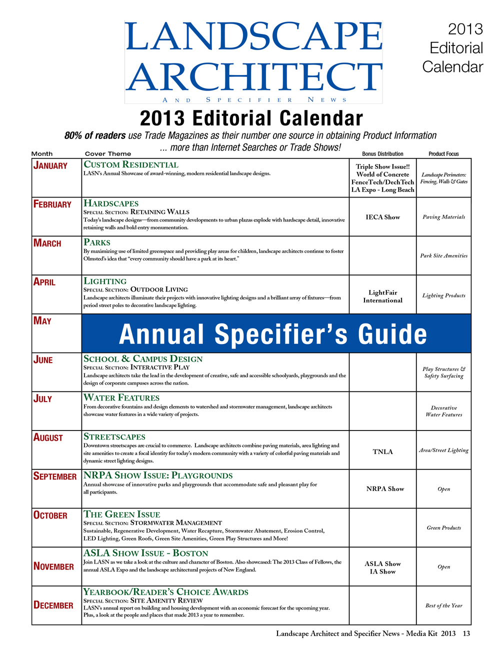LASN 2013 Editorial Calendar