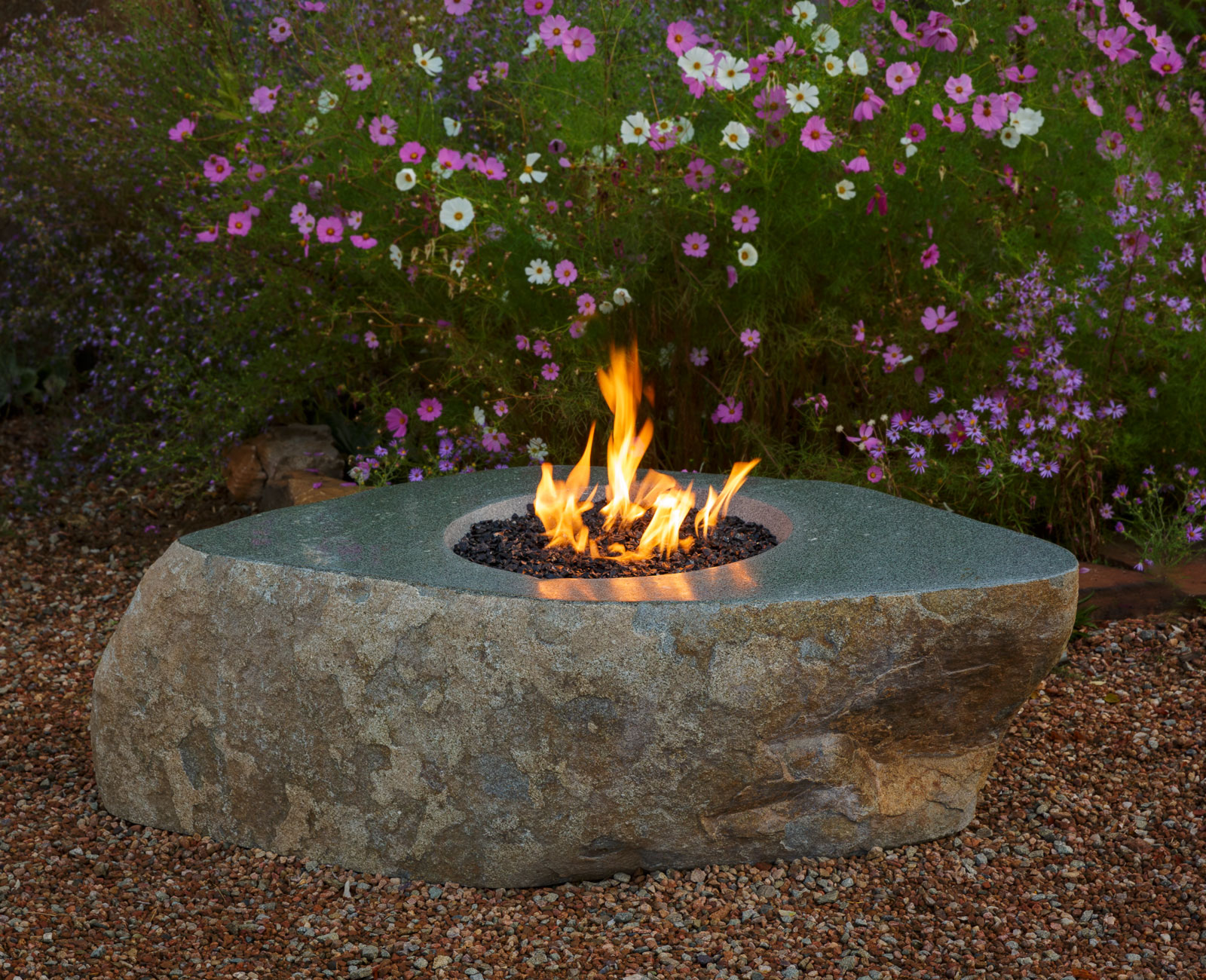 Our fire vessels are carved from blocks of stone and one-of-a-kind natural boulders. The designs work with both natural gas a...